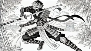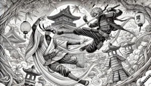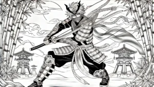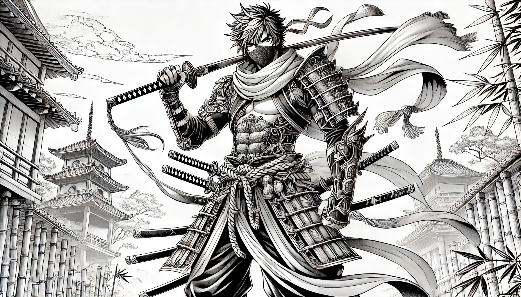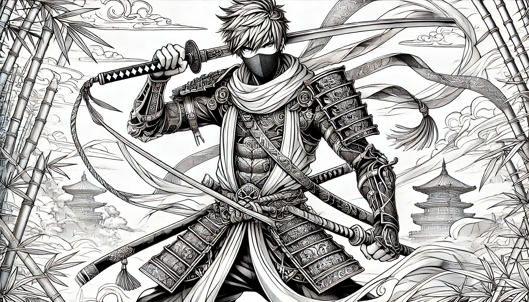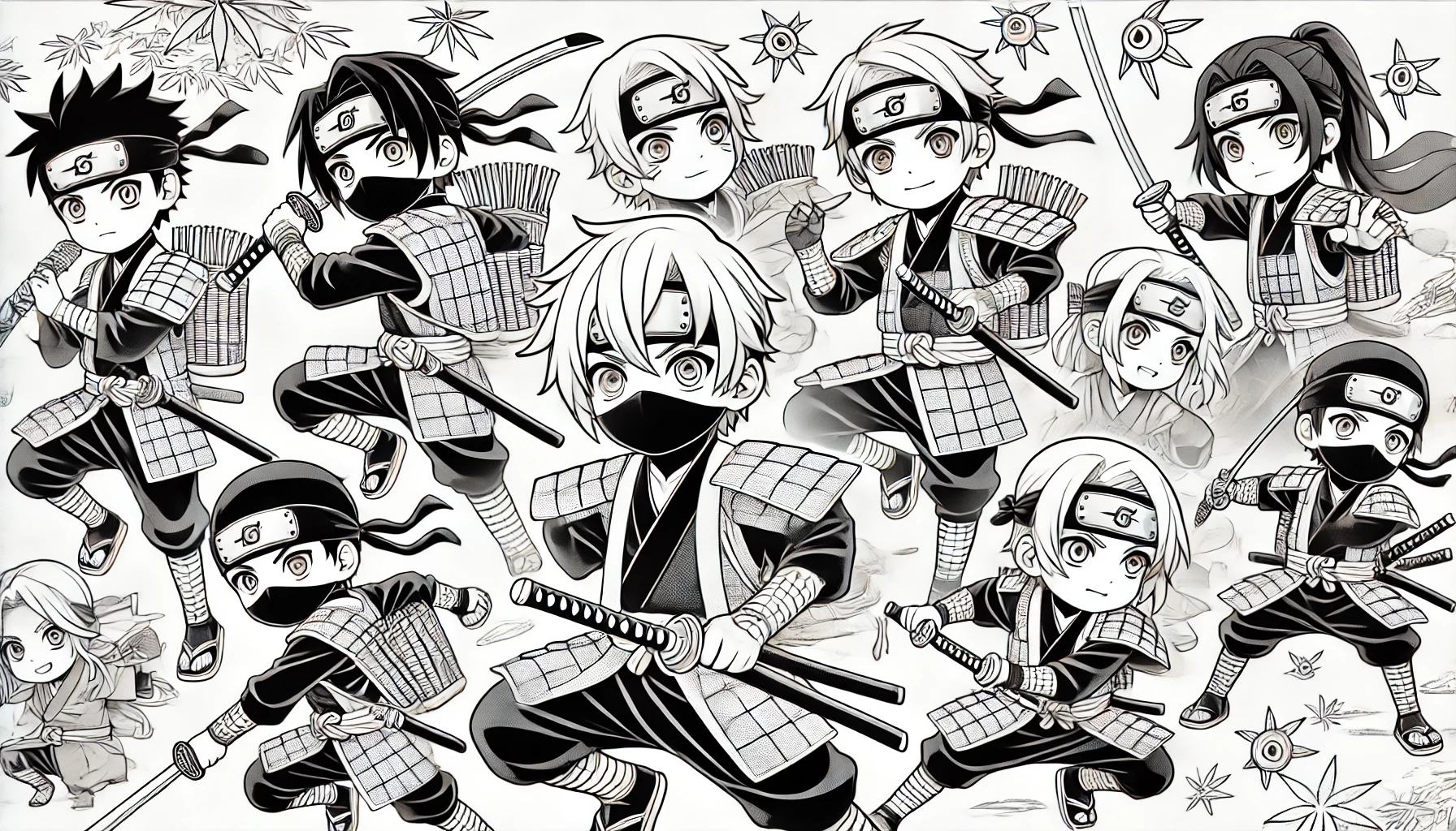 Ai generated anime coloring page awesome ninja in a cool fighting pose