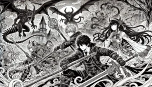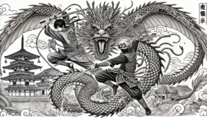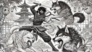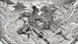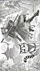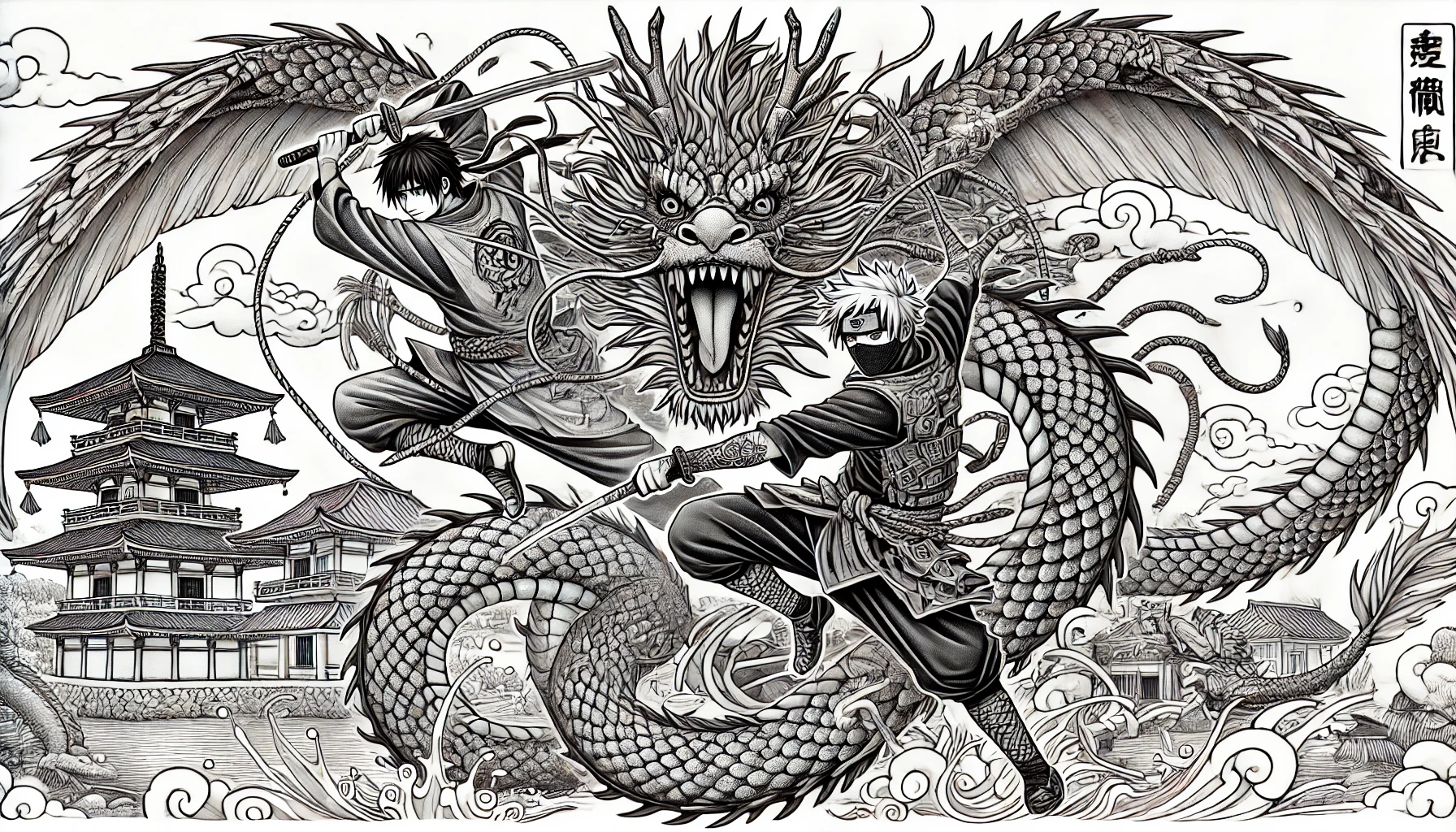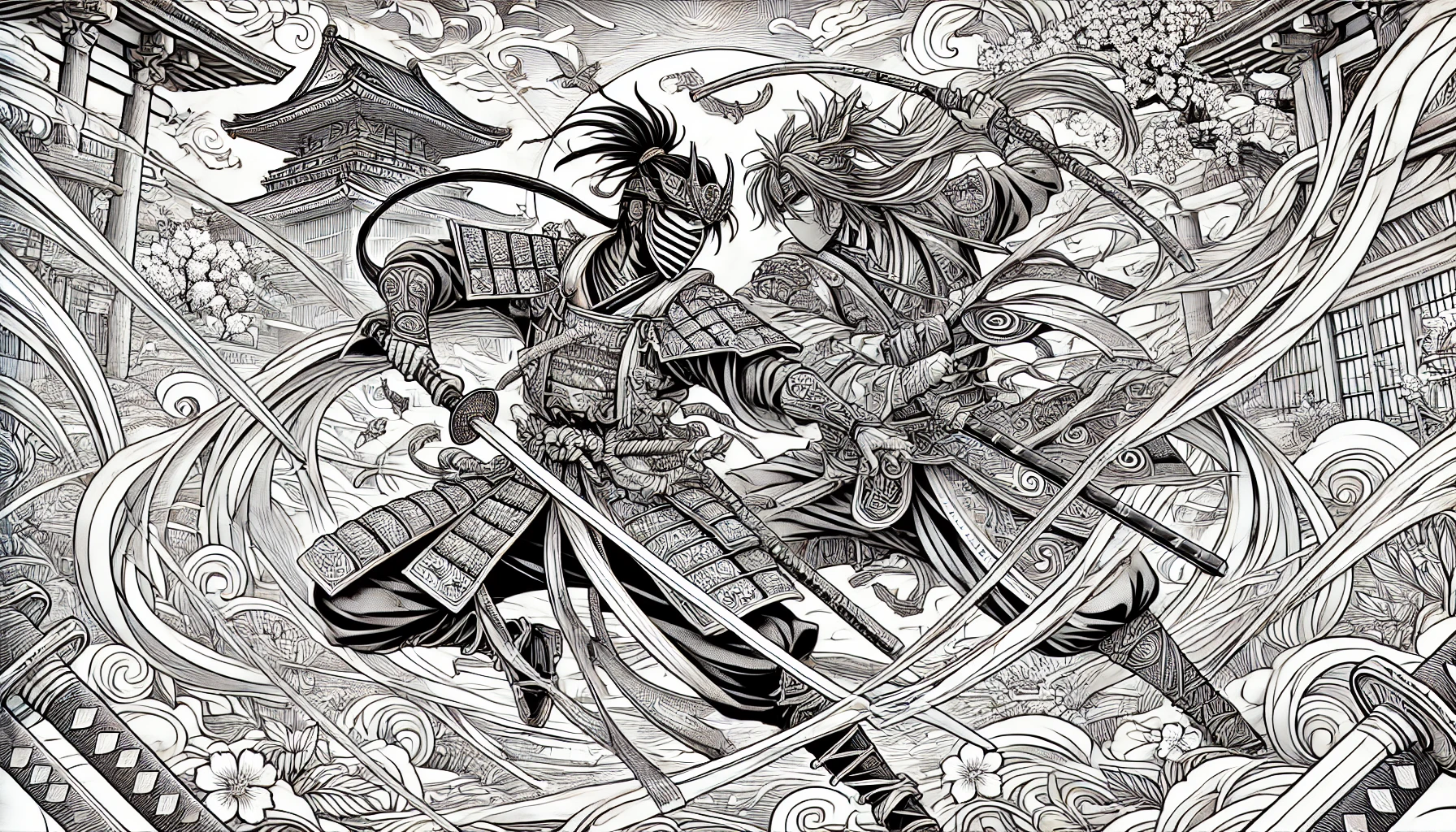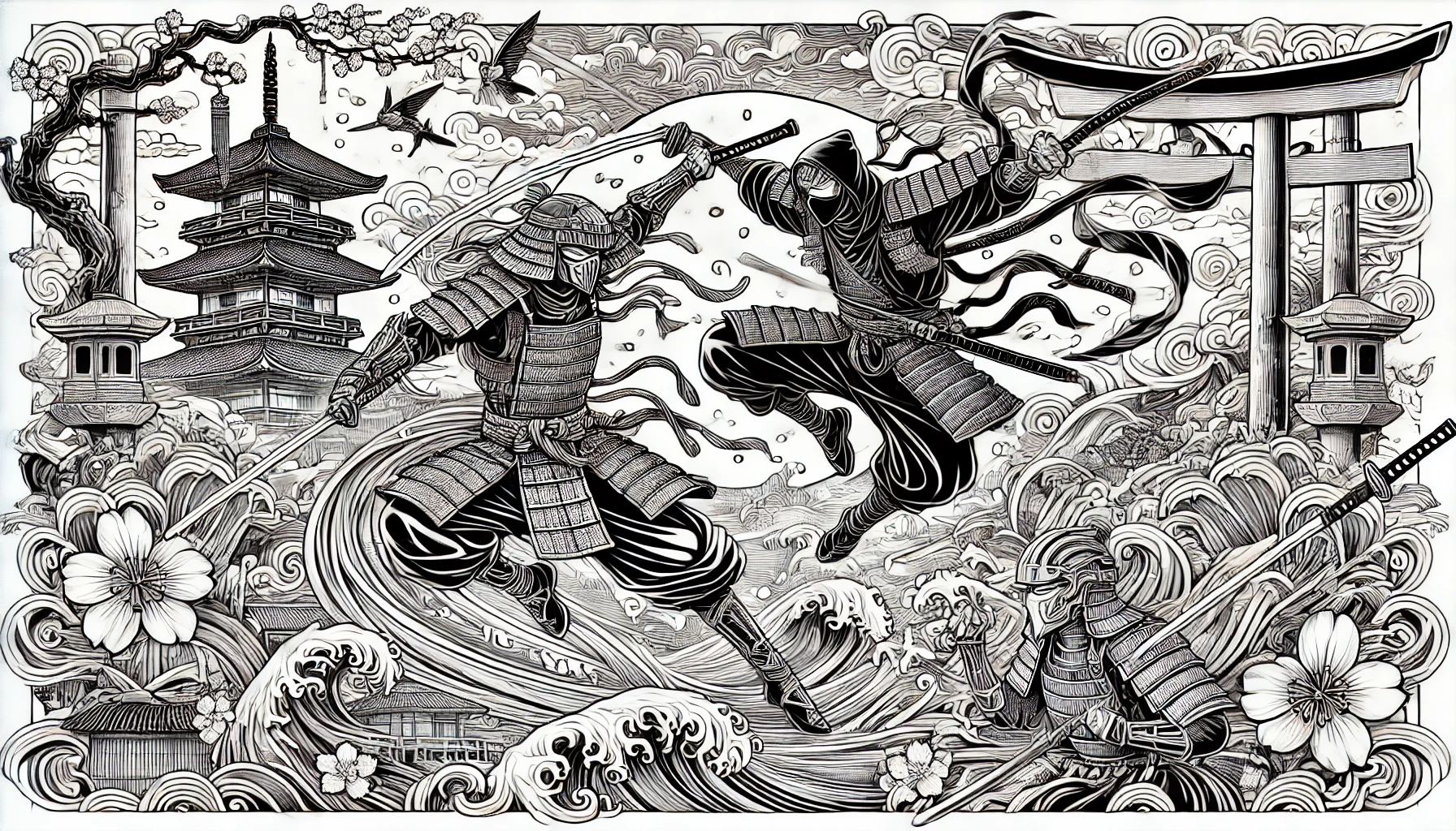 Ai generated anime coloring page epic ninja battle adult coloring page