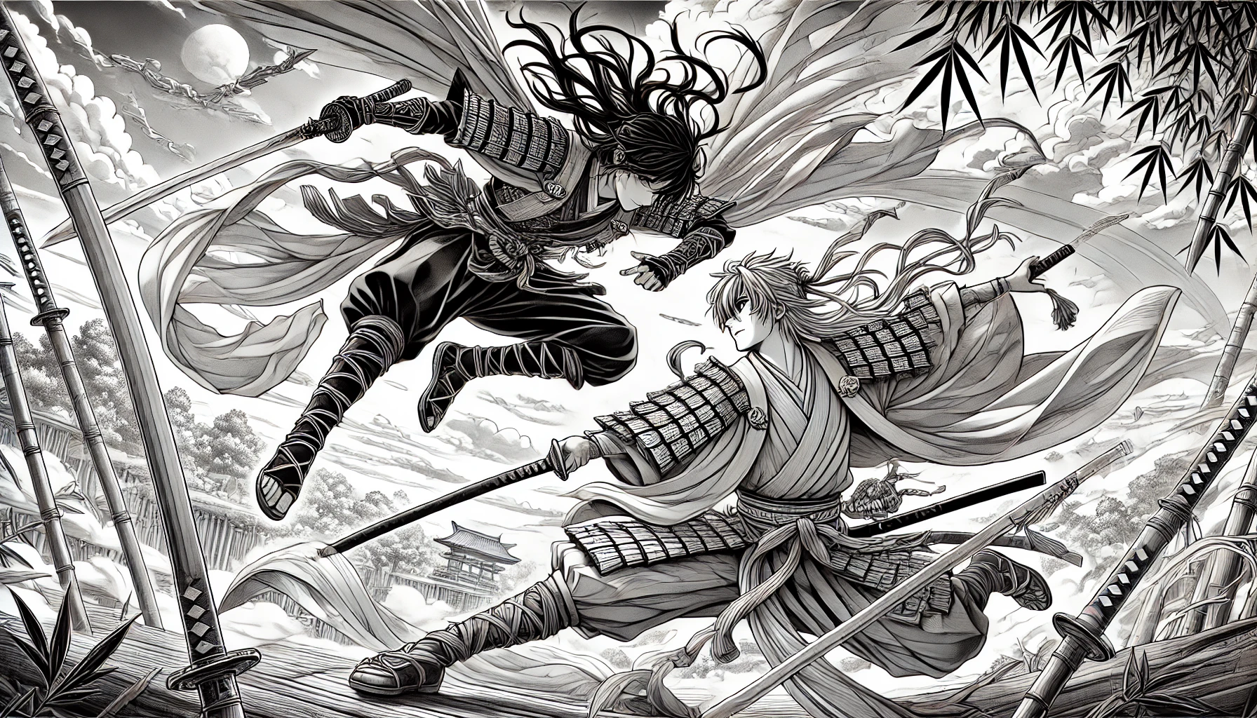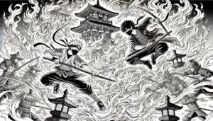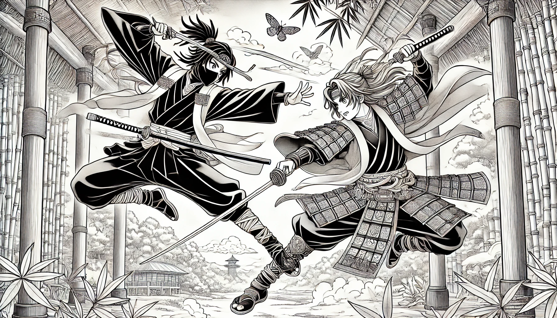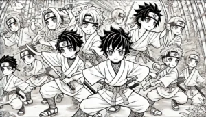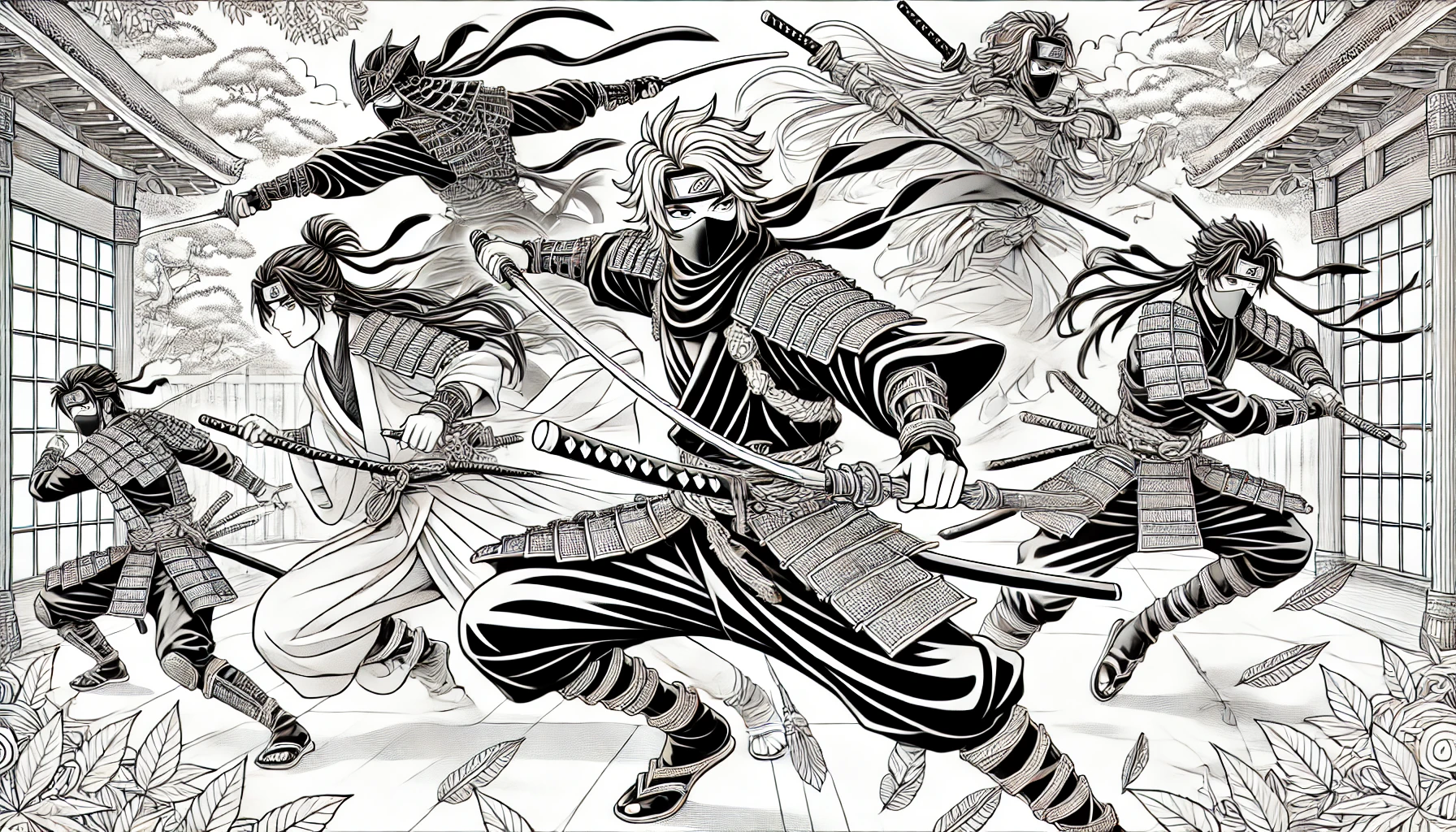 Ai generated anime coloring page ninjas fighting in an epic battle