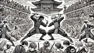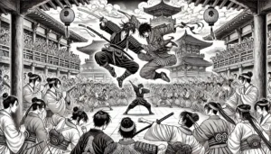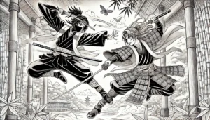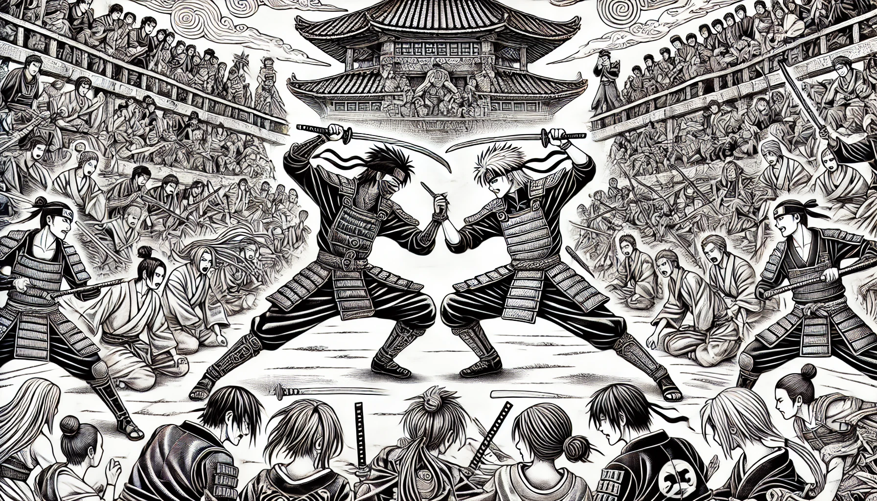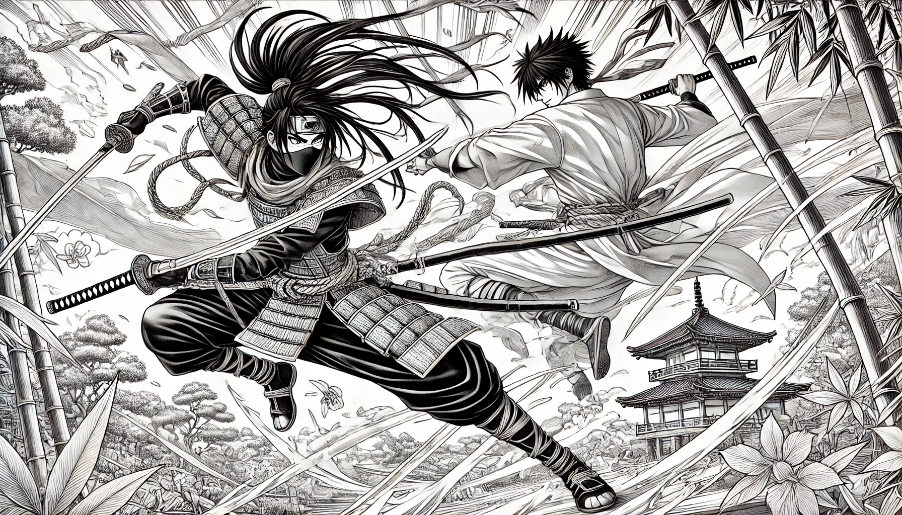 Ai generated anime coloring page ninjas fighting in an epic battle